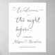 Elegant välkomstskylt för repetitionen middag. Brud och brudgummens namn skrivs i typsnitt med hjärtformad koppling. Om du vill använda detta kalligrafiska teckensnitt, vänligen kontakta mig för att ändra namnen. Annars kan du anpassa texten enligt dina krav.