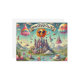 Här är vattenfärgen stil-resekortet för April Fools Day, som har ett surrealistiskt landskap med flytande slott, godisberg och studsande gelémoln, som nu är målade med flytande penseldrag. 😂 😜 himmel är fyllt med färgstarka, kartoonska moln och flygande fisk, medan ett fånig leker sol med solglasögon vid betraktaren. På scenen finns det godis med gigantiska glasögon, tekopp och eländiga älvor med vrister, allt med vattenfärg struktur. Texten "Välkommen till Nonsenseville!" är i elegant, flyter skript och skapar en drömmande, fantasifull vibe.