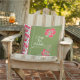Detta är en snygg dubbelsidig utomhuskudde för att förgylla din veranda som välkomnar dig och dina gäster till paradiset på ena sidan med en het rosa bakgrund, limegröna accenter och hibiskusblommor. Baksidan inbjuder dina gäster till: Komo mai e noho som betyder "Kom in, sitt, vila" på hawaiianska på en limegrön bakgrund med en matchande rand på vänster sida och samma blomaccents. Detta är från Hot Pink Hibiscus Collection som är exklusivt för SalonOfArt.com och du kan mixa och matcha för din utomhusdekoration.