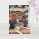 Detta pensionskort visar vår vackra tyska herdehund namnet Myla. Myla slappnar av med tungan hängande ut och ett av hennes långa ben dinglande över kanten på en tegelvägg. En skylt ovanför Myla säger "Välkommen". Orden på detta kort säger "Välkommen till pension" och "Grattis Du Lucky Dog". Ett perfekt pensionskort för varje hundälskare.
