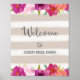 Poster skriva ut för välkomsttecken med rosa fuchsia-blommor och taupe rand vattenfärgsbakgrund.