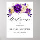 Elegantens royal lila guld Tema möhippa välkomnar poster med elegant bouquet av royal lila, Indigo, guld, gult färg blommor och eukalyptus ro. Kontakta mig om du behöver hjälp med anpassning eller om du behöver någon annan produkt med den här designen.