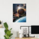 Väntar på klarering i geostationär bana för att lämna hemplaneten och utforska nya världar i rymden. Liz Molnars anpassningsbara digitala grafik. Plattor, stjärnor, utrymmesmoln, ljus tillverkades med vanliga Photoshop-effekter och penslar, planetens yta skapat från foton.