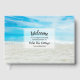 En vacker strandhus gästbok med ett foto av sandstrand och blått havsvatten (eller ladda upp ditt eget foto) Lägg till fyra rader med anpassad text för att personliggöra. Perfekt för ett strandhus, semesteruthyrning, husvärmegåva, strandbröllop och mer.