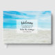 En vacker gästbok för strandhus med foto på sandstrand och blått havsvatten (eller ladda upp ditt eget foto) Lägg till fyra rader med anpassad text för att anpassa. Perfekt för ett strandhus, uthyrt semesterboende, husvärmegåva, strandbröllop och mer.
