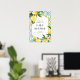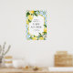Välkomna gäster till ditt evenemang med det här välkomsttecknet för babyduschen. Den har vattenfärgade illustrationer av citroner, citronblommar och Medelhavsbrickan mönster. Anpassa genom att lägga till namn, datum, tid och annan information. Den här välkomstskylten för citronbabyduschen är perfekt för nöjesduschar i sommar och Medelhavet.