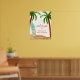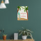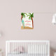 Tropical Beach Surfboard Baby Shower-tema, Baby på babyduschen. Bebisduschen i party, party-skyltduschen. Designad sandstrand med handflatan träd och surfa ombord på beige-bakgrunden färg. Matchande objekt i vår butik Urban Aglow Design.