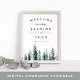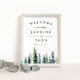 Välkomna gäster till er jord, skogsmark eller bröllop med vår Timber Grove-poster, med en grund gräns av gräs träd i vintervattenfärg i grönt i rik shades av grönt och av rökta jägare. Lägg till namn, bröllop-datum och anpassningsbarnas välkomsttext med hjälp av fält.