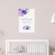 Vattentärsfärgad blommigt bröllop välkomstposter med ultraviolett färg under 2018 med skuggor av lila och avsningsluckor i grönten. Blommor är bl.a. vattenkraft, lavender, ponnyer och ro.