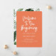 Välkommen till vår början på ett tropiskt lövbröllop. Med trendig handskriven skrivstil och akvarell tropisk botanisk lövillustration. Del av en komplett bröllopssvit.