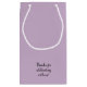 Små, glansigt LAVENDER-presentpåsar till paket dina gästers välkomstgåva till din bröllopsdag, repetitionsmiddag eller någon annan speciell händelse, ändra bara ordalydelsen. Du kan ändra typsnitt, färg och text. Du kan göra väskan vilken färg som helst. (1) KLICKA PÅ CUSTOMIZE verktyg (2) Till lämnad, under lagrar, klicka på Bakgrund: Bilder och text (3) Klicka på Bakgrund Färg (4) Från högerna, välj från färger eller klicka på länken Visa väljare i Färg och markera ett färg eller ange hex-koden för färg. (4) Klicka på Klart. Mått 5 tum lång x 3 tum bred x 8,5 tum hög