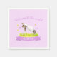 Vår lamm hoppar över söta nyfödd bebis välkommen till världsservetter om lila party. Cute nyfödd bebis-kort med söt vattenfärgsmålning av ett vismiskt lammskjut i en skugga med fjärilar, ditt eget namn-val i det lila grafikbandet. Cute lamm på en lila himlar-bakgrund som är idealisk för en gård där nyfödd bebis under temat baby välkomnades party eller insamling. Andra söta fårmatchningsartiklar tillgängliga. © Uniquely målat in water color and designad by Sarah Trett for www.mylittleeden.com