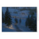 I denna fantastiska scen på en vinternatt leder en isig väg mellan snöborrningarna längs backe och över floden till en välkomststuga med ljus i fönstret. Spårvägen och stenstenarna över vatten tänds med varma glödande lyktor, och en brinnande eld bredvid väg sänder gnistor in i kallet nattetid luft.