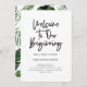 Välkommen till vår början på ett tropiskt lövbröllop. Med trendig handskrift och akvarell tropisk botanisk lövillustration. Del av en komplett bröllopssvit.