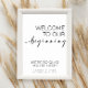 Ram detta minimala stil, "Välkommen till vår början", poster att göra sitt eget välkomsttecken i bröllop om du har ett enkelt, klassligt och underskattat bröllop. Namn och datum nedan kan redigeras