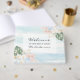 Välkommen din gäst med vår Strandhus Uthyrning Blommig Gästbok. Med blå akvarellbakgrund och blomsterbukett är denna gästbok lämplig för din strandhusdekor. Även lämplig för uthyrning, kuststuga, säng och frukost, resort, strandbröllop och speciella sommar tillfällen.