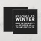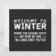 Lustigt "Välkommen till vintern - där parkeringsplatserna är sammansatta och körfälten spelar ingen roll" vinterkördesign i ett enkelt, vitt sans serif-teckensnitt. Denna enkla och ändå öga-infångande körning på vintern, humoristiska ordspråk, ger en trevlig gåva till dem som bor där mycket och förstår humor i körning under vintern.