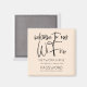 Ett praktiskt sätt att behålla din WiFi-information som alltid är lätt tillgänglig för besökare i ditt hem, med detta Magnet för kylskåpet, med informell svart kalligrafi och hjärtmotiv för huvudrubriken Välkommen till vårt WiFi. Resten av texten som du enkelt kan anpassa med din egen nätverksinformation och ditt eget lösenord. Du kan också ändra gräddbakgrunden färg om du vill genom att anpassa ytterligare alternativ.