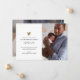 Meddela och välkomna ditt nyfödd bebis till världen med vårt enkla och moderna baby-kort för födelseinformation. Utformningen har en enda fotolayout som visningar ditt nyfödd bebis-foto. Ett enkelt faux guld-hjärta med baby namn, födelsedatum, födelsedatum och anpassningsbar-meddelande som visas på ett snyggt sätt på sidan med ett enkelt gräns. Den omvända sidan har ett andra foto av fullt.