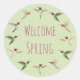 Söt "Welcome Vår"-dekal med Anna Hummingbird på gröntens bakgrund. Anna hummingfåglar, med sina härjande strumpor ro rosa och fjädrar är inhemska i Nordamerikas Stilla havsområde kusten.
