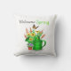 Accentuerar dekorationen av ditt utomhuslivsutrymme eller veranda med denna vårstils kastkudde. Denna säsongskudde har en bukett av gula blommor, en monarkfjäril och en grön vattenkanna.