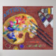 Poster för konstnärer och älskare med målning av en palett, färg och penslar.