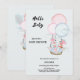 Välkomna din lilla en med denna förtjusande baby shower-design med en söt elefant som sitter på mjuka moln.