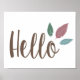 Fjäder i rosa, blått, grönt färg välkommen poster. Hej ord-kalligrafibrev poster.