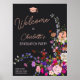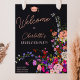 Elegant modern sommarblommor i vår med söt vild blomma och penselskript välkomsttecken i studenten med modern kalligrafi med röd, lila, rosa, terracotta blommor på mörkens grått bakgrund