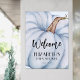 Den här babyduschen Välkomna poster vackert blå pumpor på blekens blå bakgrund. Du kan ändra tillgänglig STORLEK, klipp och ramar. MATCHING-objekt i vår samling.