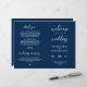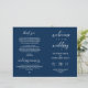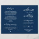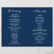 Det här är det folkliga programkortet för ceremonin i bröllop, i manuset i Navy Blue elegance. Det är designat med rullans accenttecken som kan vara personlig med anpassningsbar/ personlig för brudens sida, ceremonidetaljer, minnesanteckningar och tack. ** Obs! Dessa pappra textviktsprogram anländer jämnt och kräver vikning för att samlas ihop.