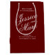Burgundy Simple Typography Bröllop Välkommen Medium Gift Bag. Baggar för bröllopsförmån för gäster.Den här presentpåsen för elegant är dekorerad med enkel skripttypografi Du kan ändra namn, text och lägga till märkre samt satingband. Matchande objekt är tillgängliga.