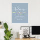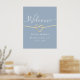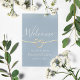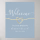 Elegant, moderna, minimalistiska dammiga blå bröllop-hälsningar poster med faux guld-rep och ett enkelt handskrivet kalligrafi-skript.