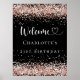 Välkommen poster för en giftig och glamorös 21:a (eller någon ålder) födelsedagsfest. En svart bakgrund i snyggt som dekorerats med konetti i ro guld. Anpassa och lägg till namn och ålder 21 år. Vit brev. Välkomna skrivs med ett hjärta.