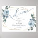 Välkomna till Dusty Blue Rustic Blommigt Calligrap Poster