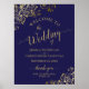 Denna vackra marinblått och guld bröllop välkomna poster har en utformning som är enkel men samtidigt både elegant och glam. I typografin ingår manusgrafi och det finns ornerade golden faux foil-kurvor och snurrar i hörnen. Underbart sätt att välkomna dina gäster till din speciella dag.