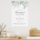 Denna minimalistiska eukalyptus rehearsal middag med välkomna poster är perfekt för en rustisk bröllop-repetition. Utformningen har grönt eucalyptus löv för vattenfärgsfärgers elegant.