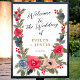 Välkomna gästerna med värme och elegans med vår välkomstskylt från Rustic Elegant Winter Blommigt. Denna utformning förkroppsligar årstidens anda, med en handmålad vattenfärg ram, försedd med en graciös blandning av röda blommor, flytande dammiga blå nyanser och verdant grönt gräs grenar. Med ett typsnitt av eleganten anger det här tecknet tonen för en förtjusande vinter firande som skapar en minnesvärd och inbjudande atmosfär för din speciella dag.