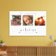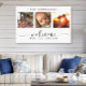 Den här fantastiska kanvas-väggkonsten har ett vackert fotokollage med tre ram som visar omhuldade minnen, med det hjärtliga budskapet "Välkommen till vår historia". Den svarta och vita eleganten skapar tillsammans med utsökt skript och trycktypografi ett sofistikerat och hållbart biet som kompletterar alla insida stil. Anpassa det till din familj namn. Skapat av Farmhouse Press.