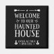 Välkomna till vårt hemsökta hus Halloween Black & White Typography