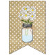 Rustic land bunting flaggor banderoll - "Welcome Friends". Välj färg med vit polka-punktbakgrund. Vintage Mason burk med vita daisy blommor. Anpassa den. Perfekt för en party, rustik bröllop, babydusch eller skördefestivaler i land. För att lägga till samordnande produkter, besök min butik "The Hungarican Princess" på www.zazzle.com/hungaricanprincess*. Titta i min samlingskategori för "Burlap-sökning".