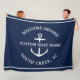 "Välkomna ombord" på marinblått flottfilt samt din anpassningsbar båt namn och plats.