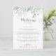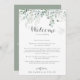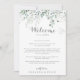Detta minimalistiska eukalyptus bröllop välkomna brev är perfekt för ett bröllop i Österrike. Utformningen har grönt eucalyptus löv för vattenfärgsfärgers elegant. Anpassa fronten med ett välkomstmeddelande till dina gäster och till namn. Anpassa baksidan med schemat för händelser och annan användbar information.