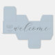 Chic och snyggt. Den här bröllopsförmånslådan innehåller ett mörk-penselskriptteckensnitt för contemporary-grått i valfri text. Välj att säga "Tack eller välkommen". Ett litet budskap finns på baksidan för gästerna, tillsammans med datumet bröllop och paret namn. Plocklådan är klädd i chic dammig blå jacka. Personligen för att göra det till en speciell gåva.