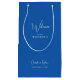 Bröllop Cobalt Blue Gift Welcome Bag. Namn och datum.