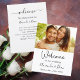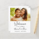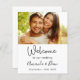 Lakan är perfekt för att fira er speciella dag och önska era gäster välkomna. På framsidan: lakan har en elegant vit bakgrund med ett svart, modernt stil-skript för namn. Anpassa och lägg till ett eget foto. Tillbaka: programmet, dagens tidslinje.