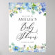Välkomsthälsa om blått Hydrangeas Baby Shower Poster