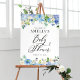 Välkomna gäster till ditt evenemang med anpassadets välkomstskylt för babyduschen. Den har en blommigt garland av blå och elfenbensalhydrangeer, ro och anemoner. Anpassa genom att lägga till information. Det här välkomsttecknet för vattendräneringen är perfekt för babyduschar i vår och på vintern.