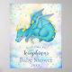 Den vackra blåa draken från baby som sover fredligt bland inklistrade regnbågslussar och guld glitter konetti-stjärnor på detta söta anpassade babydusch välkomstposter. Underbar för en drakdusch för barn eller en fantasi för en babydusch för pojke. Den här visuella designen kommer att ge lite gnistra till drakonduschen firande!