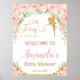 Välkomsthälsa om Guld Fairy Baby Shower Rosa Blom Poster